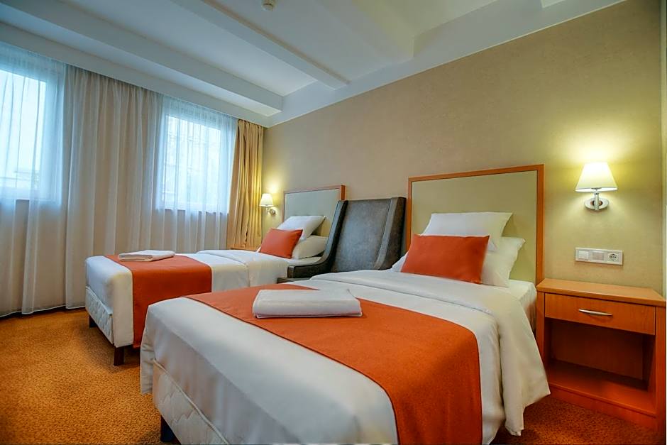 Zu den vorgestellten Annehmlichkeiten gehören ein Restaurant, kostenloses WLAN und kostenfreier privater Parkplatz vor Ort. Shuttle-Service (gegen Aufpreis) sowie Tagungs-/Bankettmöglichkeiten (gegen Aufpreis) bieten flexible Optionen für Reisen und Veranstaltungen. Zu den Komfortmerkmalen zählen Klimaanlage, ein kinderfreundliches Buffet, Bar, Terrasse, Gartenblick und schallisolierte Zimmer sowie eine 24-Stunden-Rezeption, Nichtraucherzimmer, Aufzug zu den oberen Etagen und kostenlose Pflegeprodukte. Live-Musik/Auftritte werden ebenfalls kostenlos angeboten.
